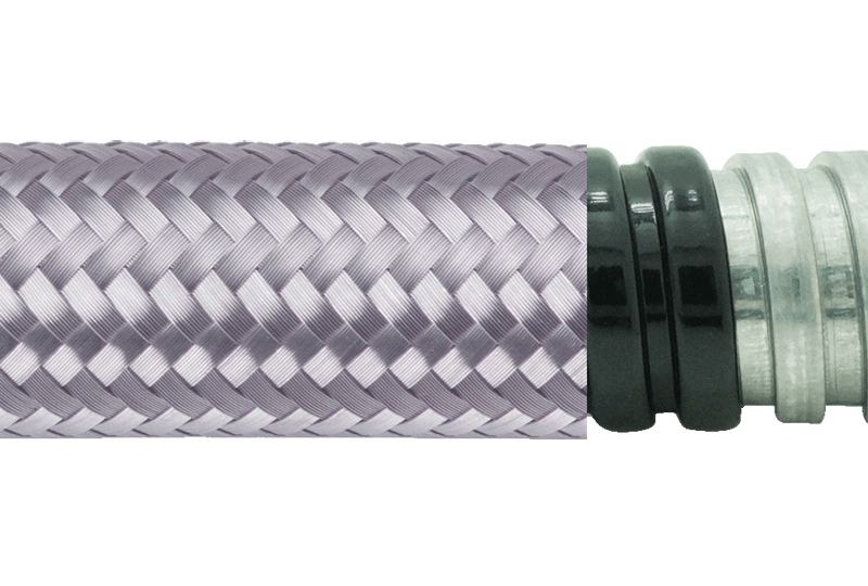 電氣保護(hù)金屬軟管 (EMI 防護(hù)) - PAG13PVCTB 系列, 由鍍鋅鋼單勾軟管外加聚氯乙烯 (PVC) 塑料防水層及鍍錫銅絲編織網(wǎng)構(gòu)成, 是 EMI 防護(hù)系列產(chǎn)品中保護(hù)等級再提升的設(shè)計(jì), 尺寸系統(tǒng)迎合亞洲市場普遍使用的規(guī)格。全系列產(chǎn)品具備優(yōu)良的機(jī)械特性及防水防塵性, 編織層額外提升耐磨性, 在可能存有電磁干擾問題的環(huán)境中, 提供較高級的 EMI 防護(hù)功能。聚氯乙烯塑料護(hù)套同時(shí)具有阻燃性, 本系列金屬軟管亦屬于低火險(xiǎn)型的產(chǎn)品。全部材質(zhì)符合 RoHS--危害物質(zhì)禁用指令, 滿足環(huán)保產(chǎn)品要求。