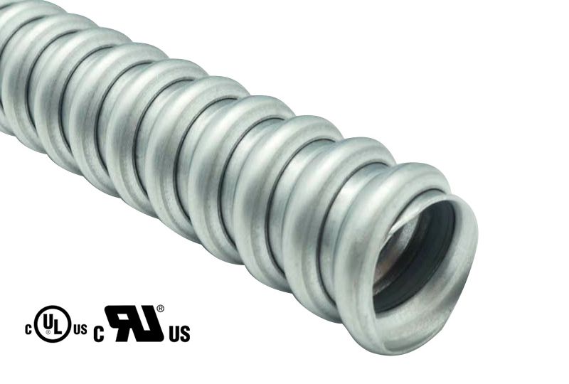 可撓性金屬軟管 - PRWG, 全系列尺寸通過美國 UL 實驗室依標準檢驗, 取得認證, 屬于薄壁型鍍鋅鋼軟管系列產品。可撓性金屬軟管以鍍鋅鋼帶卷繞制成, 材質具有耐腐蝕特性, 符合 RoHs 環保規定, 其柔軟性, 抗拉及耐沖擊性能完全符合 UL 標準, 同時滿足 NEC 電氣配線施工要求, 做為供電、通訊和訊號傳輸等等各類線纜的鎧裝保護。