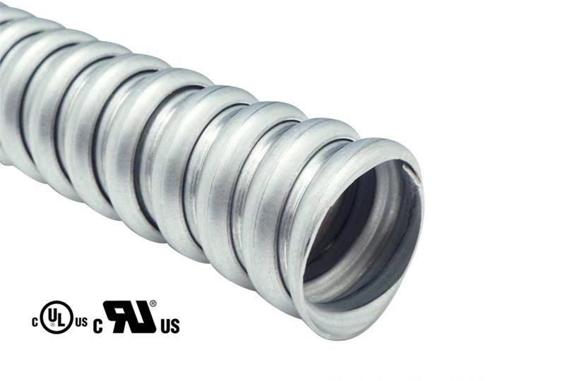 可撓性金屬軟管 - PSWG, 全系列尺寸符合美國 UL 1 標準, 屬于標準壁厚的鍍鋅鋼軟管系列產品??蓳闲越饘佘浌芤詿峤冧\鋼帶卷繞制成, 材質具有耐腐蝕特性, 符合 RoHs 環保規定, 其柔軟性, 抗拉及耐沖擊性能完全符合 UL 1 標準, 同時滿足 NEC 電氣配線施工要求, 做為供電、通訊和訊號傳輸等等各類線纜的鎧裝保護。