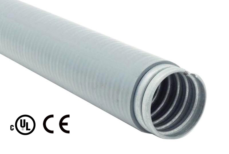 液密型防水金屬軟管 - PCULTG, 全系列通過美國UL及CSA標準檢驗, 由鍍鋅鋼帶卷繞制成的金屬軟管與防水阻燃的聚氯乙烯 (PVC) 披覆組成, 全部材質均符合 RoHs 環保規定, 而鍍鋅鋼帶材質同時具有耐氧化特性。產品結構設計考慮電氣安裝的要求, 產品尺寸 3/8"~1-1/4" 內含接地鑲嵌線, 而 1-1/2"~4" 則須另外施做接地裝置。本系列防水金屬軟管特別適合環境溫度偏低的場合使用。另外也是封閉型空間, 工作條件嚴苛的室內或室外環境的最佳選擇。與 S50~S53 系列防水接頭搭配使用, 可讓整個配線系統達到最佳的防水效能。