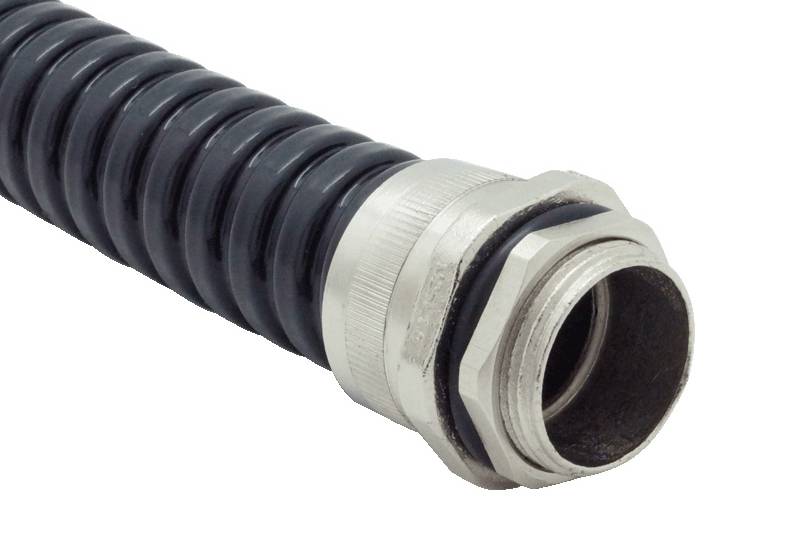 金屬軟管盒接頭 - EZ09 系列, 為防水型直接頭,在配電線路的轉接或終結點, 連接金屬保護管與接線盒或電氣箱, 使線路延續并保護傳輸安全。接頭本體材質為鋅合金, 符合 RoHS 環保規定, 一端鎖入金屬軟管, 加上外襯套與金屬軟管連接; 另一端外牙的螺牙系統則有 PG 牙或 M 牙可供選擇, 可以太陽型螺帽固定在薄壁型接線盒或攻牙的接口上。本系列金屬接頭結構簡潔, 組裝方便快速, 同時仍保有高抗拉的特性, 也可外加接地片達到接地功能; 密封件提供防水防塵的功能, 適用于室內, 室外對 IP 防護等級有特別要求的環境中。建議搭配 PEG13, PEG23, PES13 及 PES23 系列含披覆的金屬軟管使用。